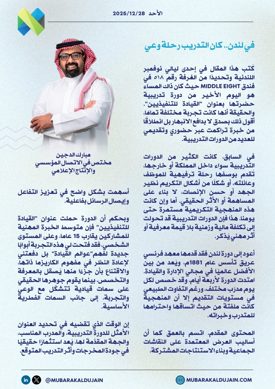 في لندن.. كان التدريب رحلة وعي